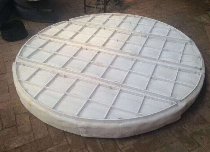 丝网除沫器主要是由丝网、丝网格栅组成丝网块和固定丝网块的支承装置构成,丝网为各种材质的气液过滤网,气液过滤网是由金属丝或非金属丝组成。气液过滤网的非金属丝由多股非金属纤维捻制而成,亦可为单股非金属丝。该丝网除沫器不但能滤除悬浮于气流中的较大液沫,而且能滤除较小和微小液沫,广泛应用于化工、石油、塔器制造、压力容器等行业中的气液分离装置中。